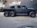 Сколько же нужно всего сделать, чтобы люди начали обращать внимание на ваш автомобиль. Но этот 6x6 Jeep Gladiator от американской компании So Flo Jeeps должен сделать свое дело. Если дикий вид внедорожника не скрутит головы прохожих, то звук от 6,2-литрового V8 двигателя от Corvette должно хватить для того, чтобы забрать на себя все внимание. Тюнинг компания начинает перевоплощение со стандартного Gladiator, а затем разрезает его на части, чтобы удлинить раму. Длинная рама создает пространство для еще одной дополнительной оси. Модифицированная трансмиссия включает в себя девятидюймовый дифференциал с Detroit True Track Locker. Эта настройка позволяет внедорожнику передавать всю мощность на шесть колес.