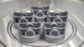 Поршни в высокопроизводительном двигателе подвергаются большим нагрузкам и высоким температурам и обычно отливаются или выковываются из алюминиевого сплава. Porsche сотрудничает с Mahle и производителем принтеров Trumpf для разработки самого современного процесса лазерной сварки металлов. Опираясь на данные, полученные прямо с компьютеров проектирования, поршни формируются путем сплавления порошкового алюминиевого сплава в 1200 слоев, по одному слою за раз.