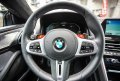 Золотистые тормозные суппорты опциональной карбон-керамической тормозной системы M, которые можно увидеть за легкосплавными дисками дизайна 813 M со звездообразными спицами, идеально сочетаются с лакокрасочным покрытием Ceylon Metallic. Благодаря пакету M Carbon Exterior в дополнение к черным деталям модели Competition и стандартной карбоновой крыше есть несколько других спортивных акцентов, элементы управления воздушным потоком спереди, крышки наружных зеркал, губа заднего спойлера и вставка диффузора также выделяются с характерным углеродным покрытием в соответствии со спортивными амбициями BMW M8.