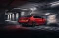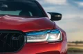 В то время как окантовка решетки радиатора и другие элементы дизайна на обычном BMW M5 F90 LCI сияют хромом, M5 Competition всегда имеет черные детали Shadow Line с расширенными функциями. Стандартная карбоновая крыша также способствует яркому внешнему виду в красном цвете Motegi с множеством темных деталей. "Реснички" лазерных фар, которые после фейслифтинга стали более заметными, добавляют синий акцент.