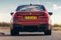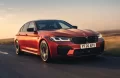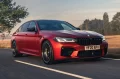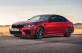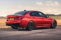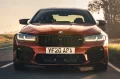Фотографии для прессы Великобритании показали обновленную BMW M5 F90 2020 в цвете Motegi Red Metallic (Мотеги Красный Металлик). Трековый вариант мощностью 625 лошадиных сил можно разглядеть как на пустынных проселочных дорогах, так и в мрачной обстановке пустой парковки. Эффект красного цвета Motegi, который меняется в зависимости от освещенности, меняется с ярко-оранжевого на ярко-красный. Автомобиль "обули" на 20-дюймовые легкосплавные диски 789 M Bicolor с Y-образными спицами, за которыми сияют золотые тормозные суппорта карбон-керамической тормозной системы M.