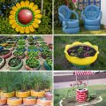 - Использованные шины для садоводства. Старые шины идеально подходят в качестве подвесных горшков или грядок для цветов.